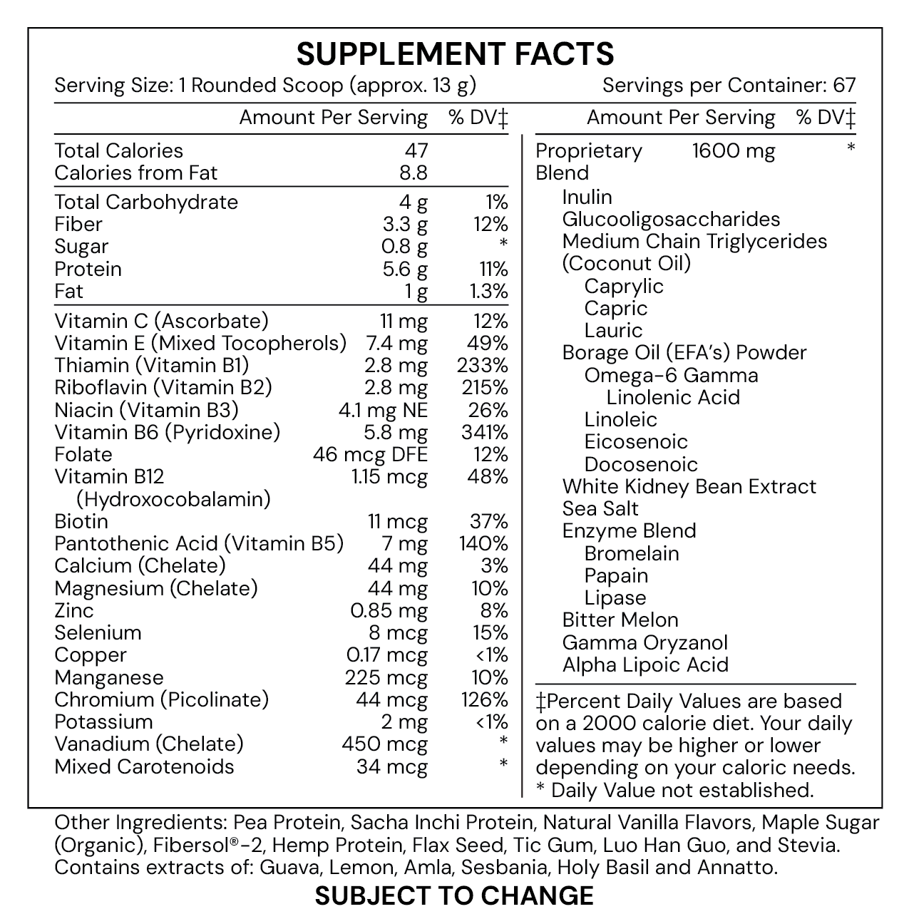 - Plant, whole food vitamins & minerals