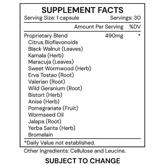 VRM3 is an herbal formula designed to support the body’s immune system and microbiome, specifically targeting the expulsion of microscopic parasitic organisms. It helps the body cleanse unwanted microscopic pathogens from the gastrointestinal tract and encourages healthy gut function.